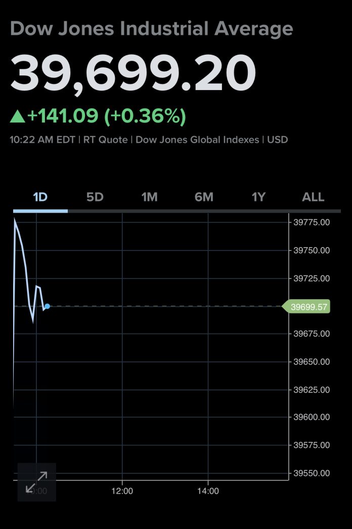 The Dow Jones Industrial Average reached historic highs earlier in the day and increased by 147 points, or 0.4%.