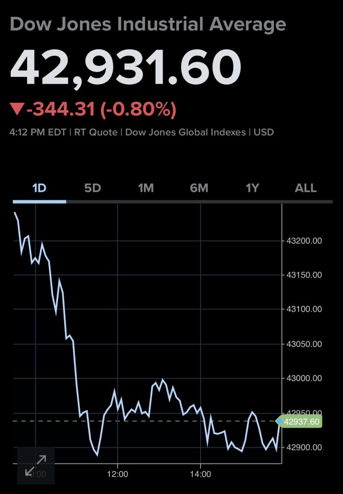 In contrast to the Dow Jones Industrial Average, which dropped 330 points, or roughly 0.8%, the S&P 500 fell 0.3%.
