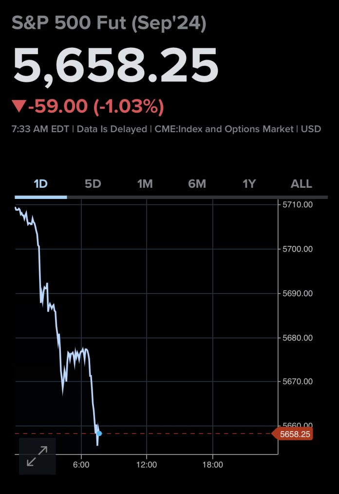 Futures for the Dow Jones Industrial Average dropped 146 points, or 0.4%. Futures on the Nasdaq-100 and S&P 500 fell 1.6% and 1.1%, respectively. Prior to the bell, Apple and Tesla both experienced 2% declines.