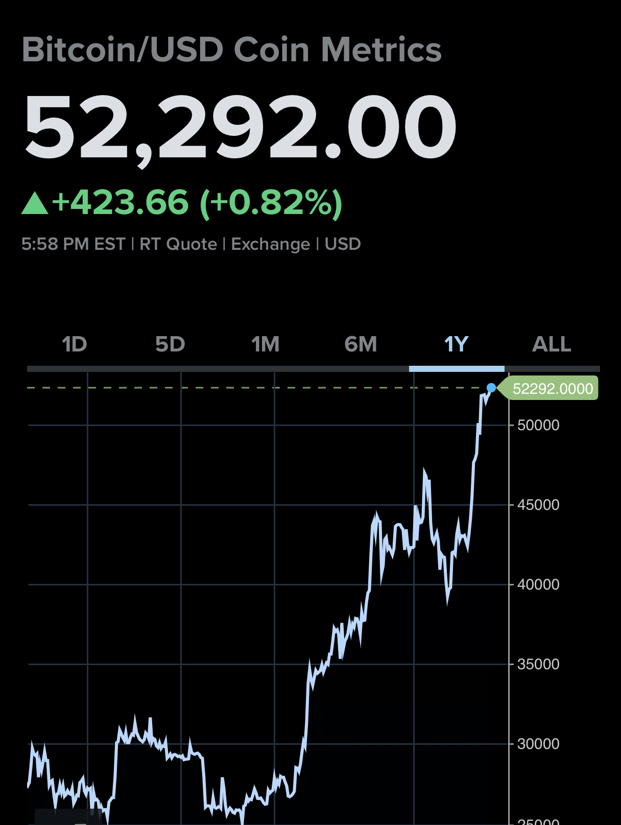 With a value of $52,292.00, bitcoin has attained a new peak. Comparing this to the prior all-time high of $48,983.00, which was reached in November 2021, shows a considerable increase.