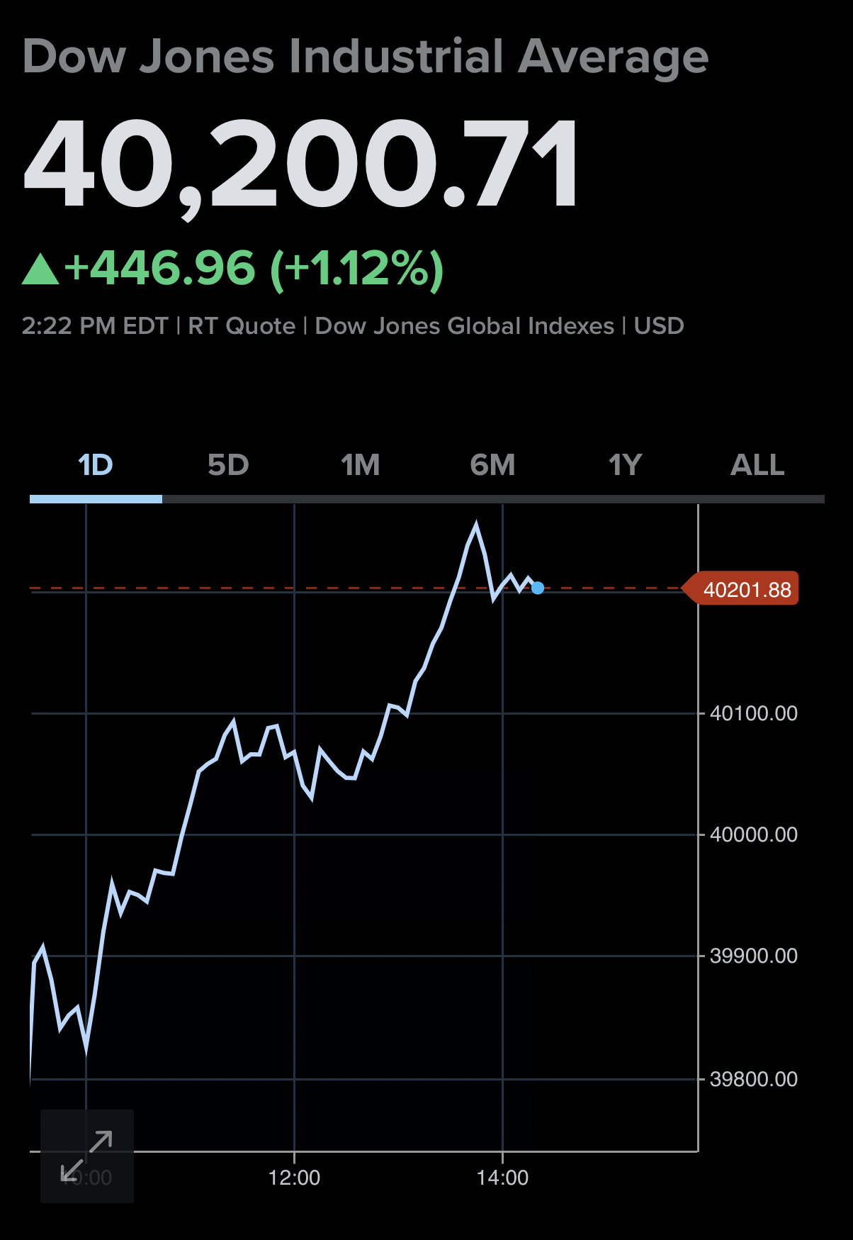 To reach a new high above 40,000, the Dow gained 487 points, or 1.2%. It had not been above 40,000 since it had surpassed the round number milestone in late May.