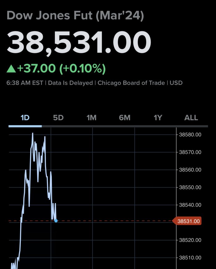 Futures linked to the Dow Jones Industrial Average rose by 53 points, or 0.1%. Similarly, S&P 500 futures and Nasdaq-100 futures each saw a 0.1% increase.