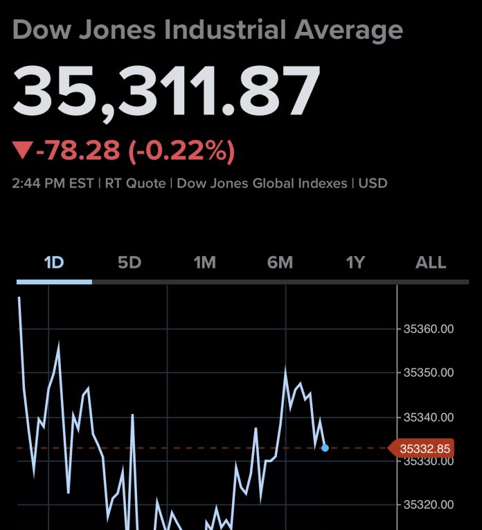As investors took a break following the major averages’ four-week winning run, the Dow Jones Industrial Average declined on Monday.