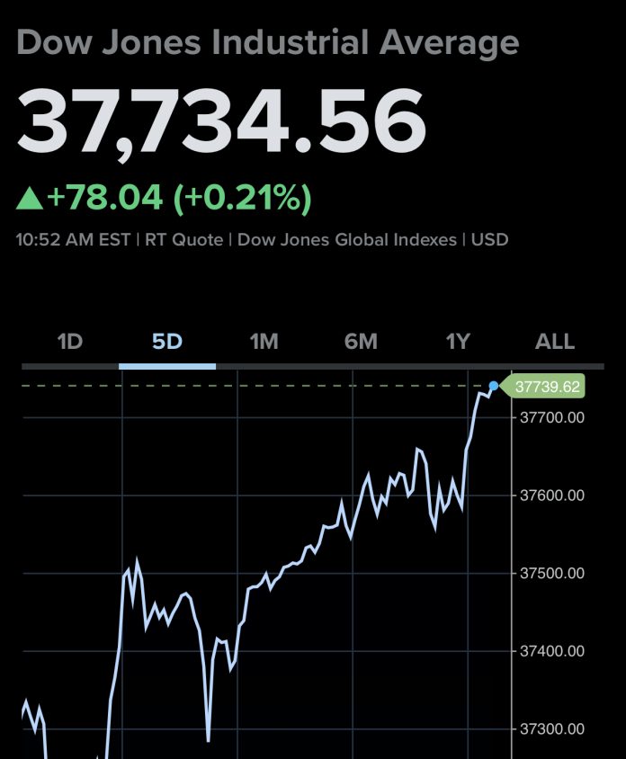 On Thursday, the S&P 500 made a slight increase, inching closer to a potential new record high. The broad market index experienced a 0.2% uptick, bringing it near its previous peak that was achieved in January 2022 at 4,796.56. Meanwhile, the Dow Jones Industrial Average saw a 0.2% gain of 78 points, and the Nasdaq Composite recorded a nearly 0.3% rise.