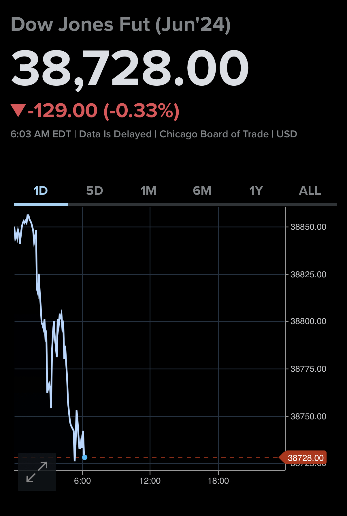 Dow Jones Industrial Average futures declined 120 points, or approximately 0.3%.