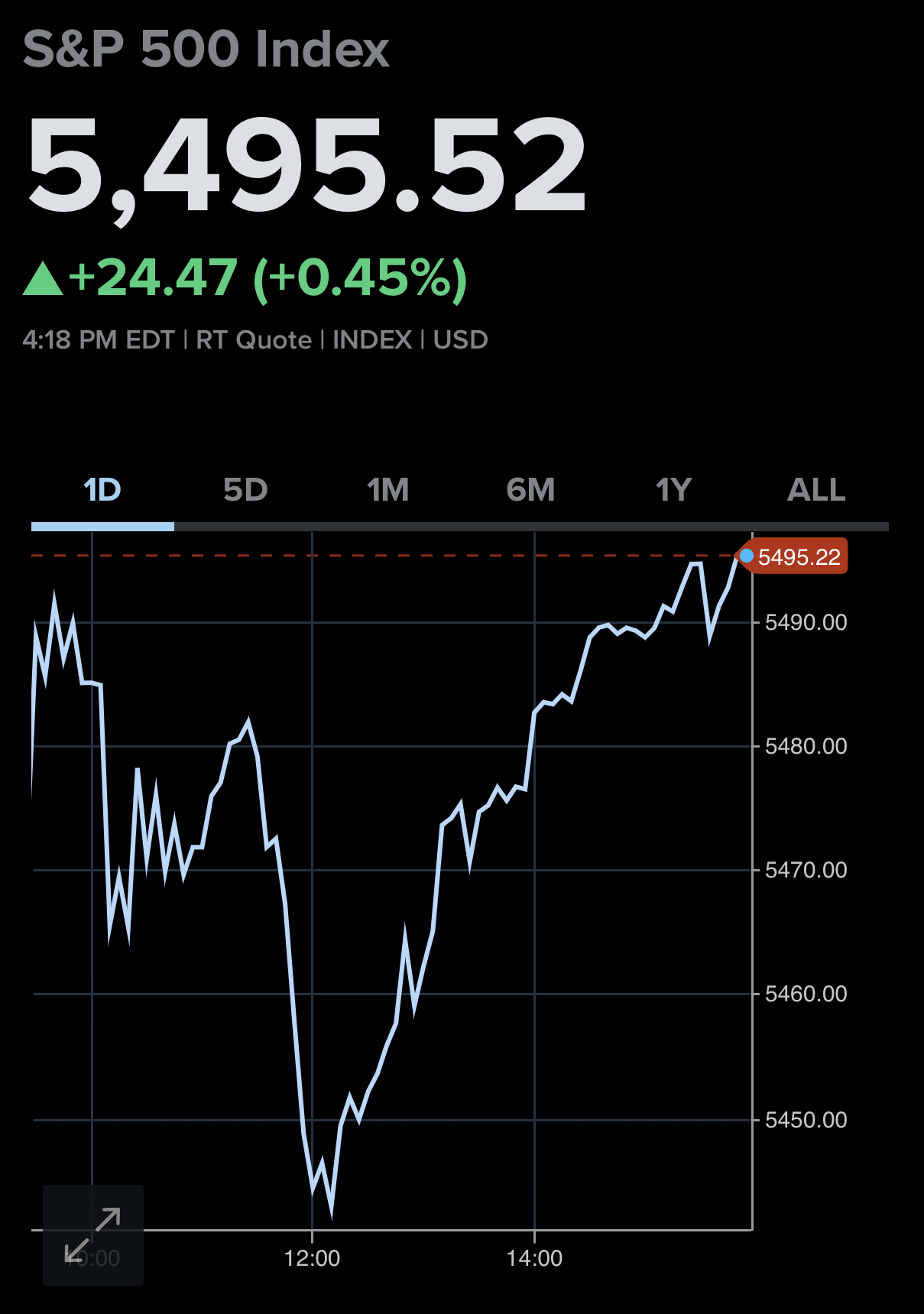 With a 0.45% increase, the Nasdaq Composite closed at 17,025.88, while the broad market index ended at 5,495.52.