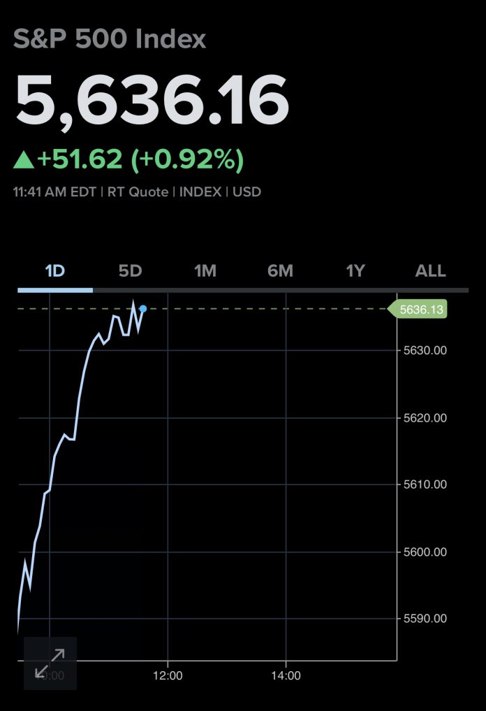 Following its decline below the 5,600 mark on Thursday, the S&P 500 saw a 0.9% increase and returned above the barrier. 0.8%, or 340 points, were added to the Dow Jones Industrial Average. It was a 1.1% gain for the Nasdaq Composite.