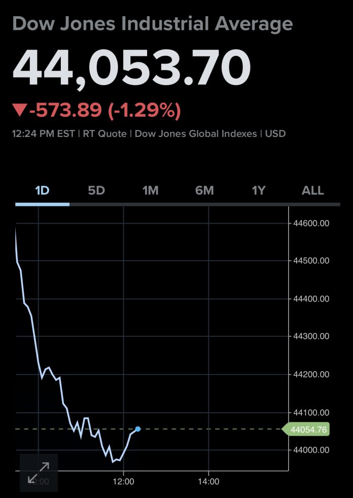 607 points, or 1.3%, were taken off the Dow Jones Industrial Average. The Nasdaq Composite fell 0.8% and the S&P 500 fell 0.8%.
