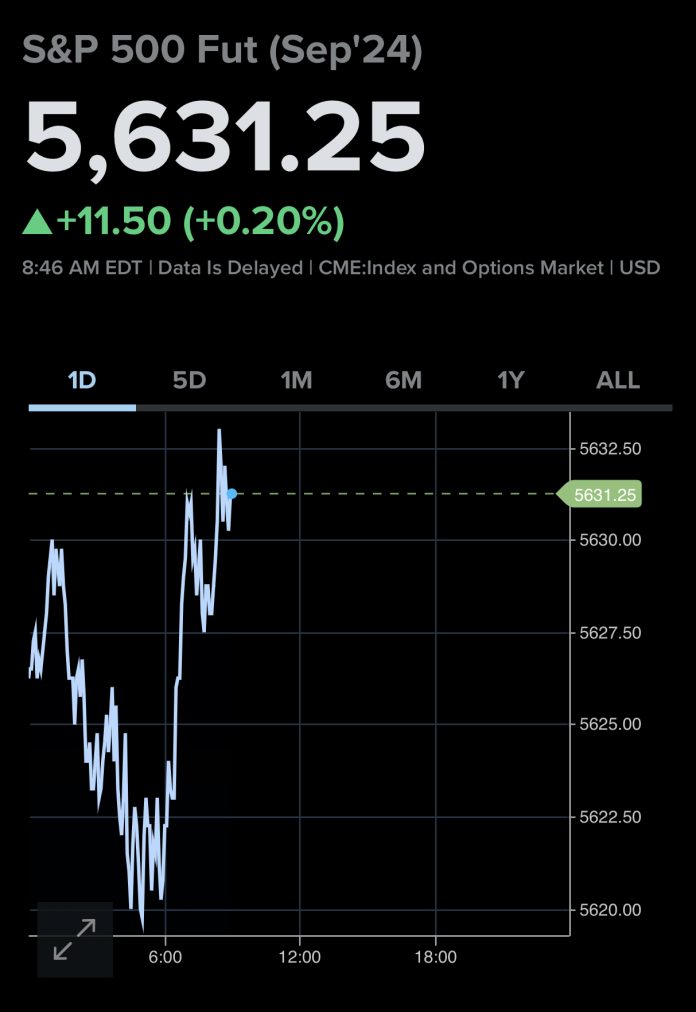 Dow Jones Industrial Average-linked futures saw a 0.2% increase of 77 points. Also up by 0.2% were the S&P 500 and the Nasdaq-100.