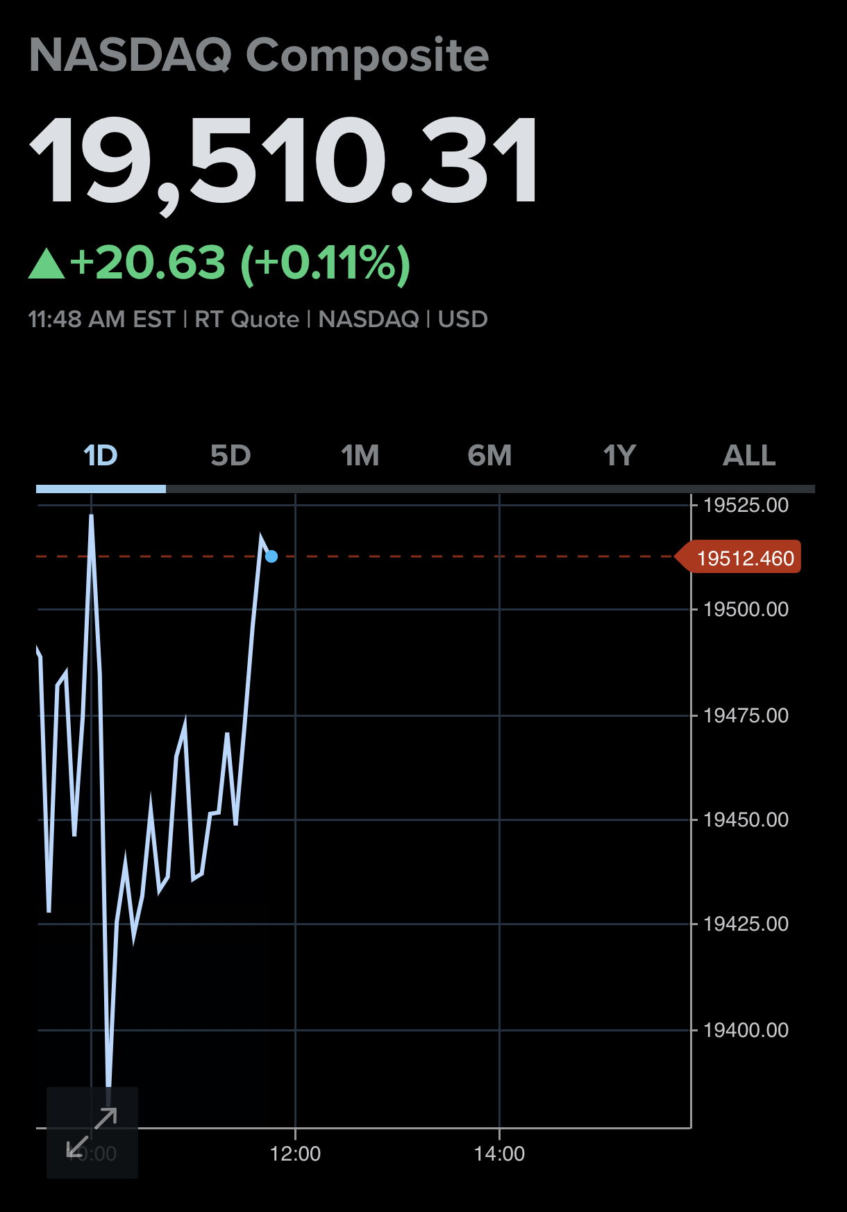 Near the flatline was the Dow Jones Industrial Average. The Nasdaq Composite saw a 0.1% decline, while the S&P 500 saw a less than 0.1% decline.