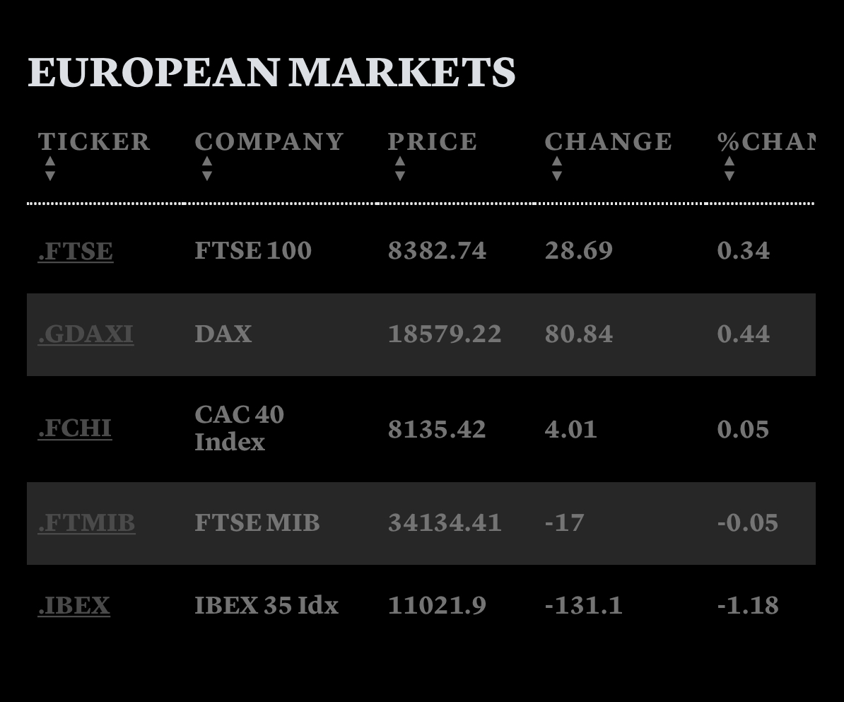 European markets saw a mixture of results on Thursday, with positive momentum easing during a busy week of earnings reports. The Stoxx 600 index showed a minimal increase of 0.01% by 12:07 a.m. London time. Sector performance varied, with auto stocks declining by 1.3% while oil and gas stocks saw a modest 0.8% rise.